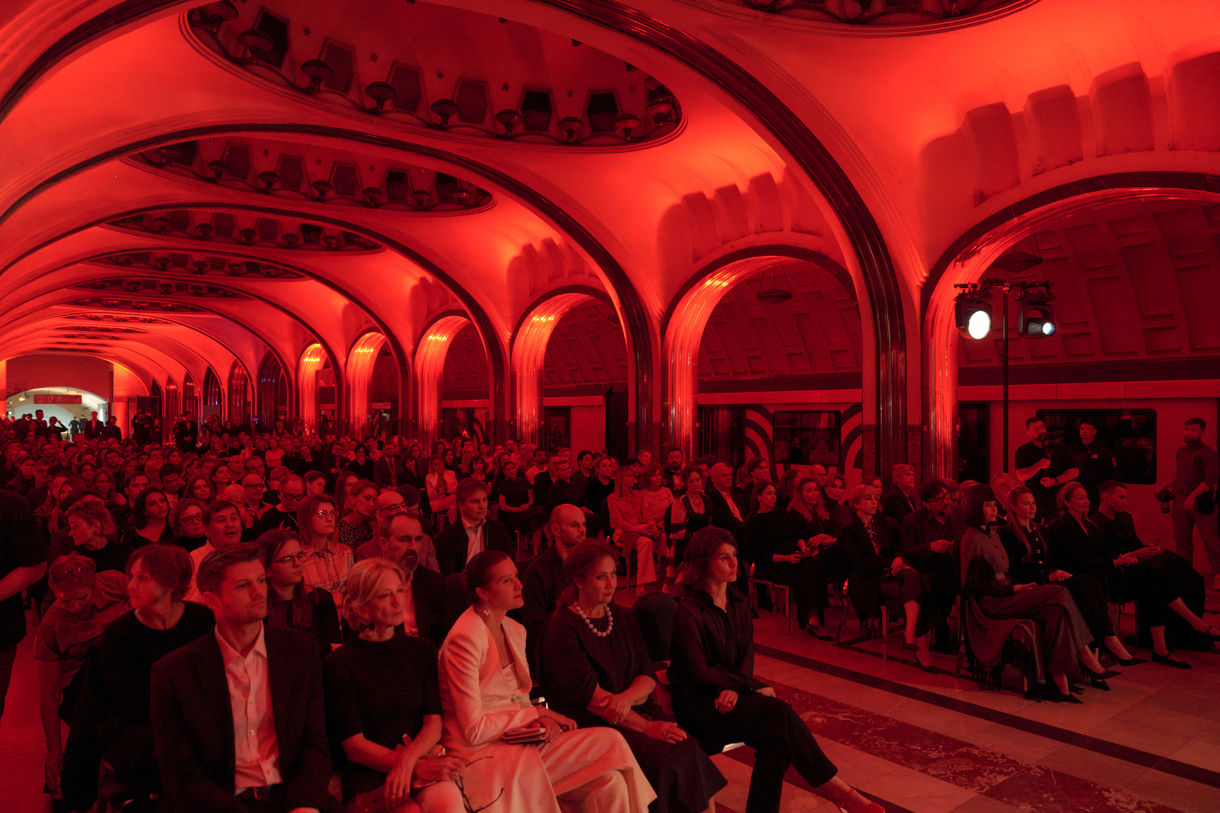 Вечер плавно переместился в пространство станции метро «Маяковская». На время концерта платформа превратилась в импровизированный зал, где звуки музыки оркестра Теодора Курентзиса гармонично дополнили знаменитые мозаики Владимира Фролова, созданные по эскизам Александра Дейнеки.