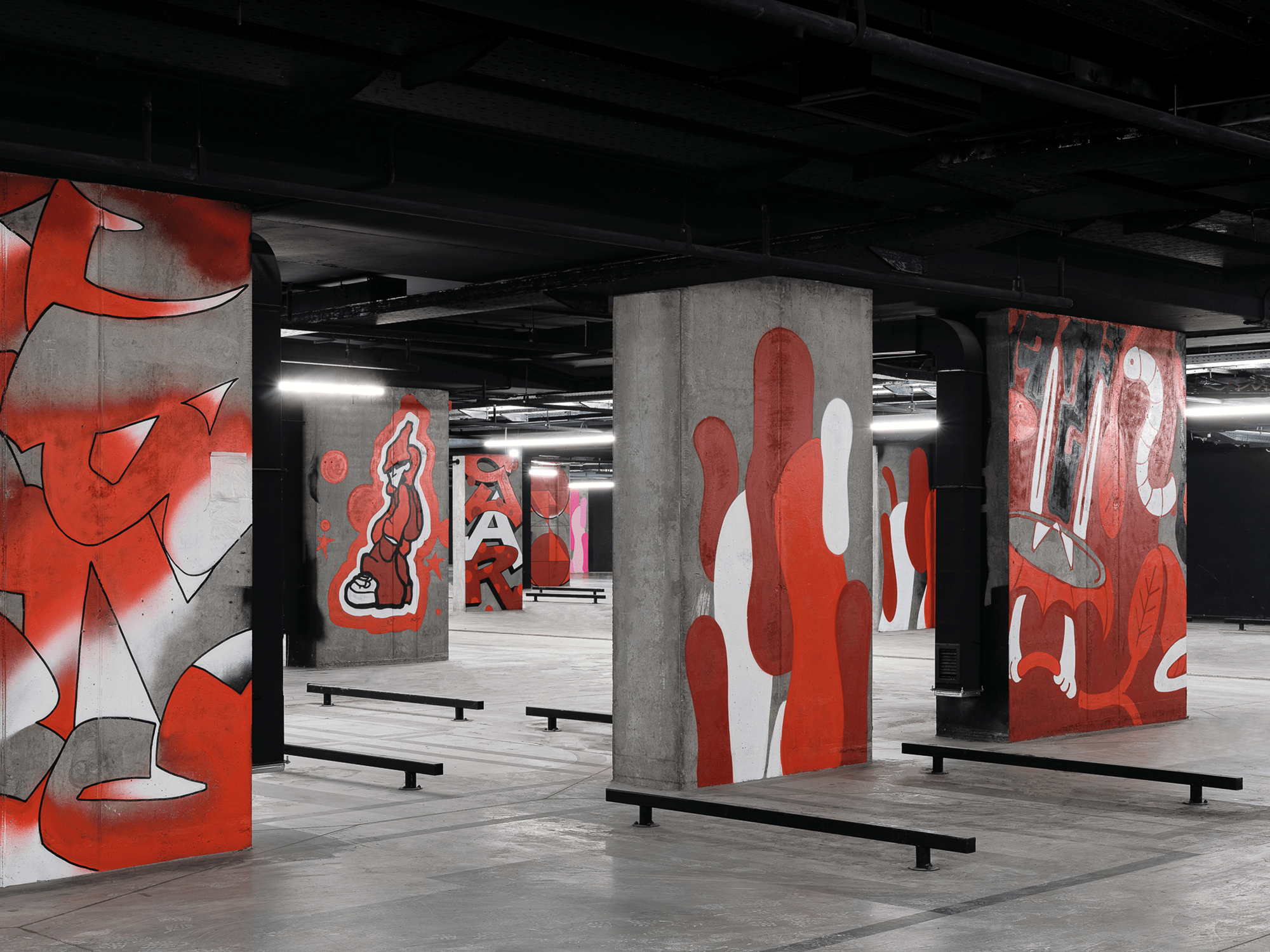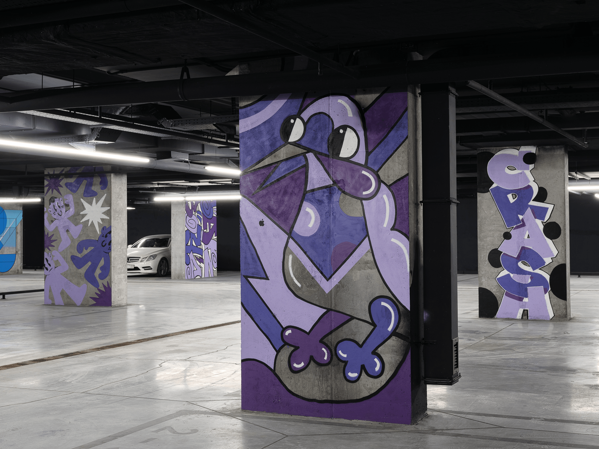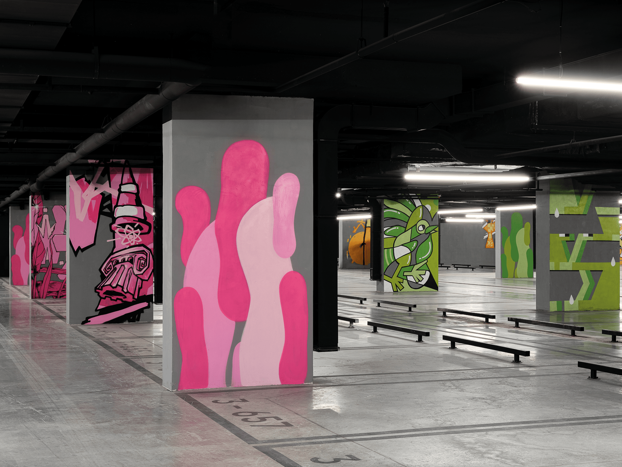 Исполнением арт-проекта занималась студия Evidence. Над оформлением подземного паркинга работали стрит-художники Snekzy, Magu, Beat. C, Frou, Olya Iney, Ashesteen, Сергей Rusich и другие. Каждому из участников были выделены стены и колонны, для которых они подготовили граффити в своей авторской манере. Чтобы рисунки в оформлении выглядели стилистически едино, было решено объединить их общей цветовой палитрой, а зонирование в паркинге сделать за счет смены цветов. Так оформили зеленую, красную, фиолетовую, синюю и желтую зоны, в каждой из которых нарисовано около 90 граффити.